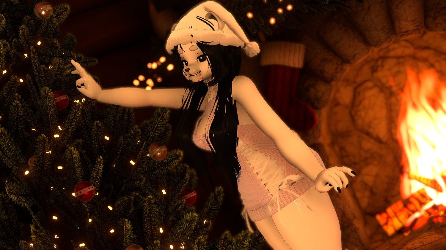 jinxxy.com tags: avatar, fem, female, alt, polar bear, furry, christmas, holiday, winter, bear